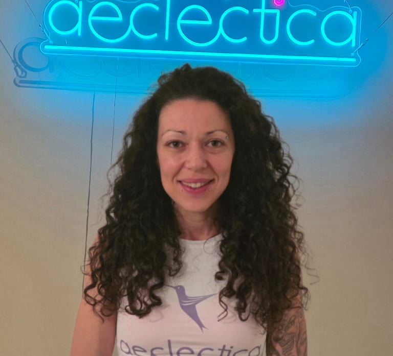 Denise Bernuci founded Aeclectica in November 2023. Luso-Brazilian and certified Yoga Teacher since 2022, she specializes in Aerial Yoga, blending strength and fluidity in her dynamic teaching style. Also a certified Bungee Fitness instructor, she developed her own teacher training course. With a background in international relations and e-learning, Denise is passionate about movement as a tool for physical and mental transformation, fostering an inclusive space for personal growth.